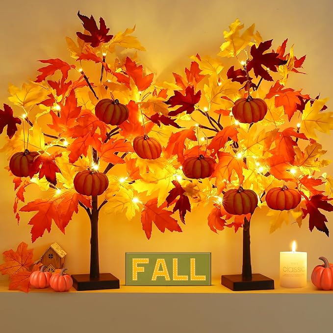 Fall Décor 2 Pack 24 Inch Fall Maple Tree